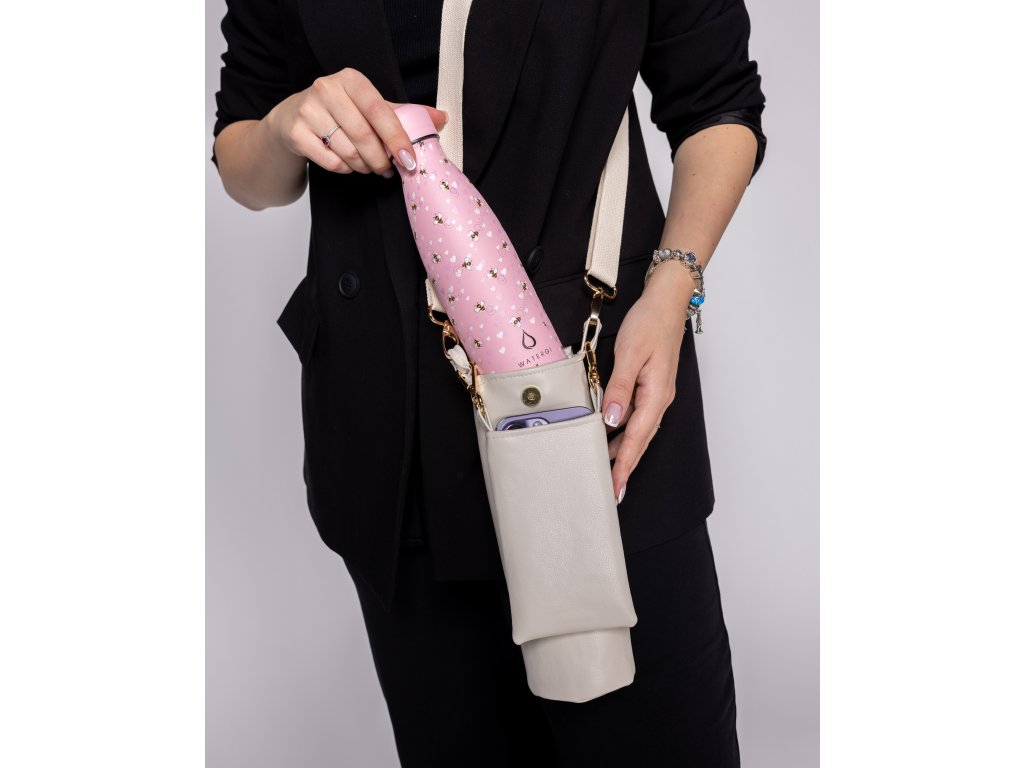 Taška na lahev 500 - 650 ml ve světle béžové barvě z veganské kůže je ideálním doplňkem pro ty, kteří chtějí mít svou láhev kdykoliv u sebe a přitom mít stále volné ruce a cítit se pohodlně.